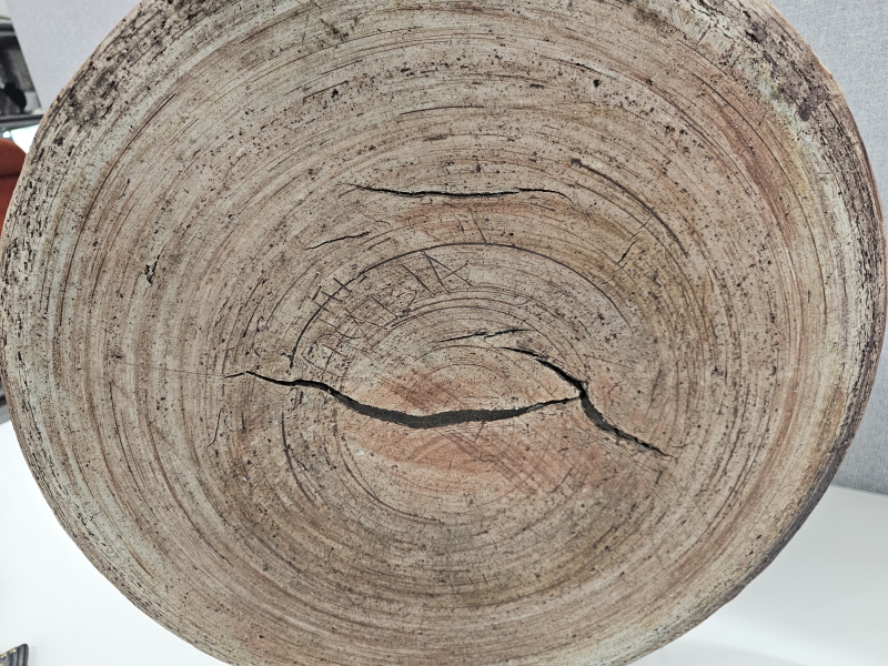 Isot "halkeamat" kuuluvat esineeseen mutta näistä lähtevät molempiin suuntiin hiushalkeamat. Halkaisija 60cm