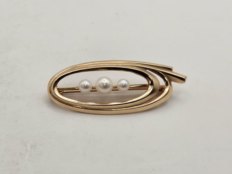 #1370 14k kultainen rintaneula helmillä, 3,93g
