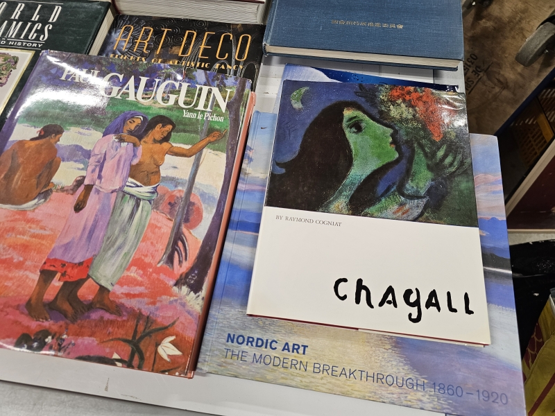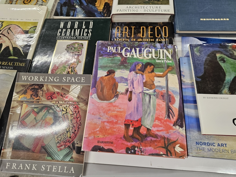 #2233 - Erä ulkomaalaisia taidekirjoja: Mm. Historic of art, Paul Gauguin + kaksi korukiveä