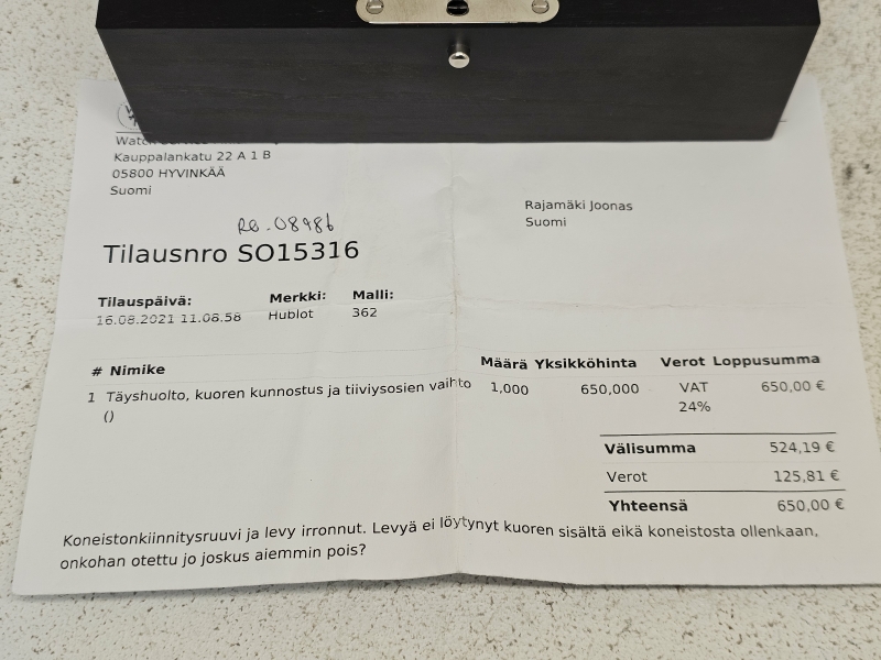 Bruttopaino 173,1g. Ref: 301PB131RX. Leveys 48mm, nupin kanssa 49,5mm. Mukana kaikki kuvissa näkyvä