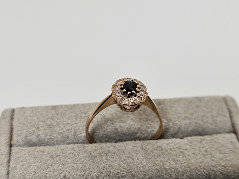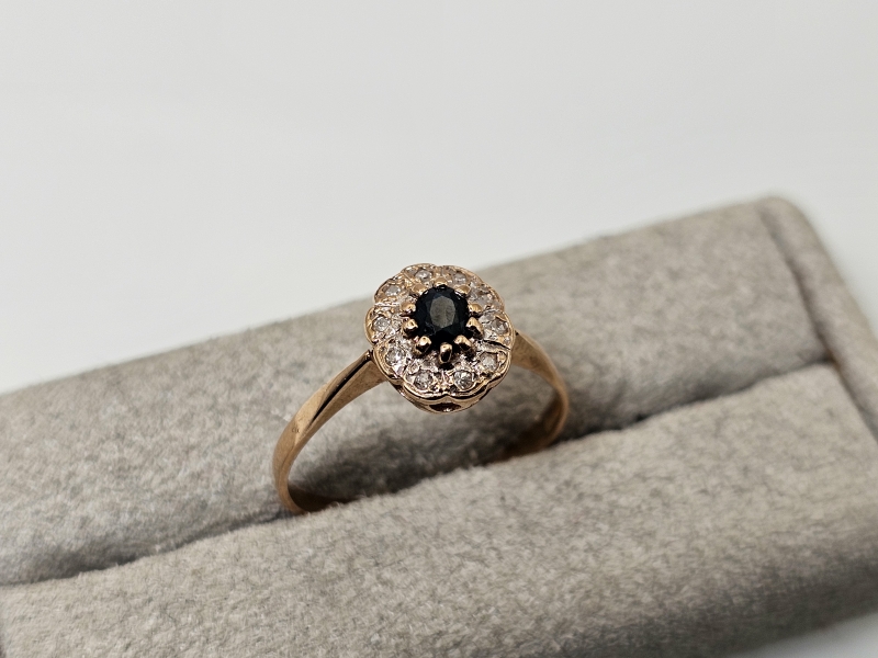 #1475 14k kultainen sormus timanteilla ja sinisafiirilla, 2,1g