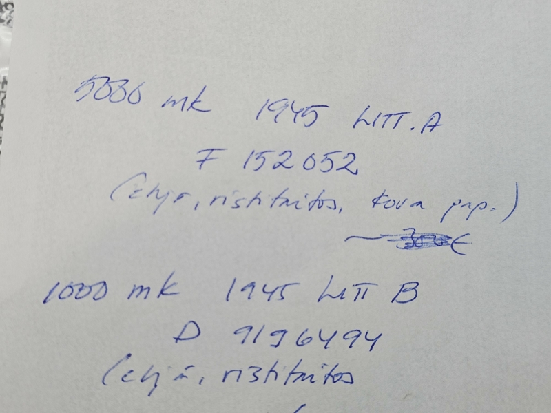#1916 5000mk 1945 Litt A + 1000mk 1945 Litt B