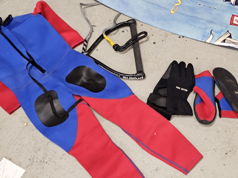#2472 - CWB wakeboard tarvikkeineen + märkäpuku n. 12-vuotiaalle