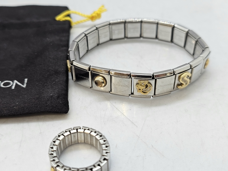#1662 Nomination rannekoru ja sormus 18k kultaisilla osilla + 2kpl rannekoruja jotka ei Nominationia