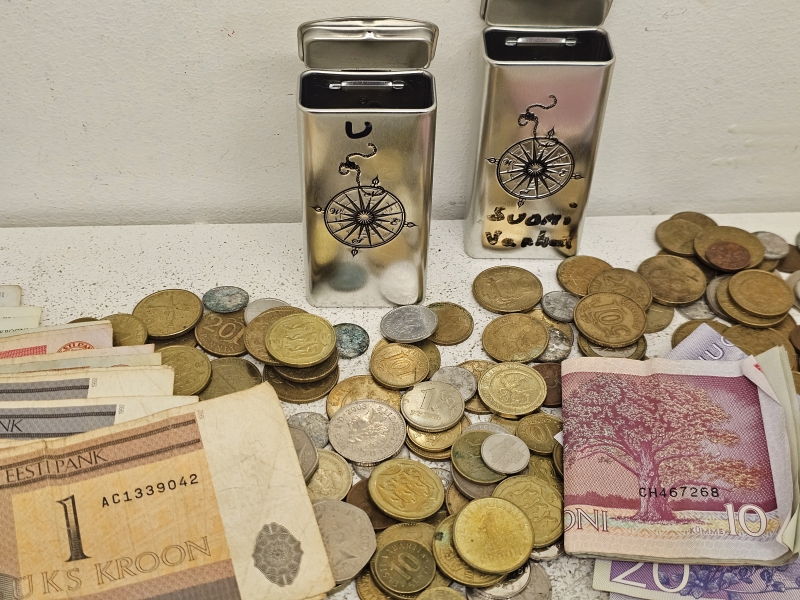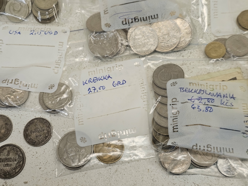 #2192 - Erä seteleitä ja kolikoita, joitakin hopeisia