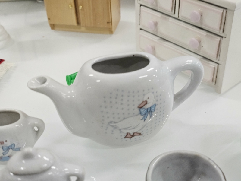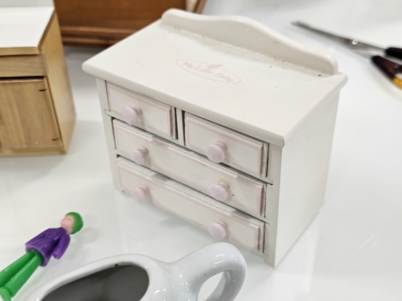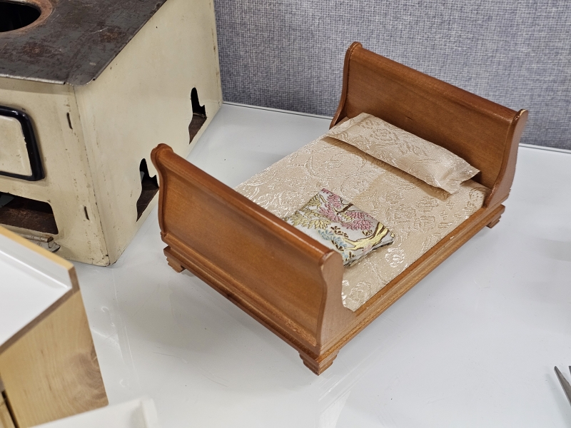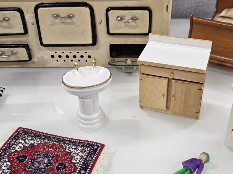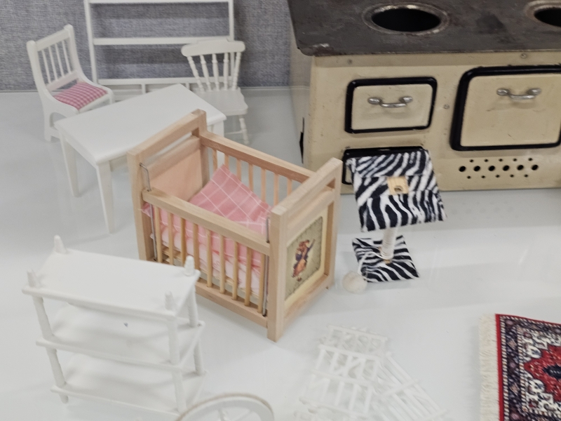 #2068 - Nukkekodin kalusteita, lastenastiasto ja peltihella