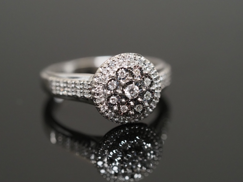 #1009 14k valkokultainen Halo-timanttisormus jossa 48 timanttia, 2,49g
