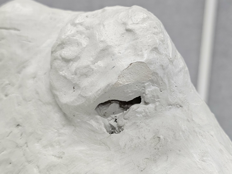 Korkeus 37cm. Muutamia kolhuja, yläosasta pala pois