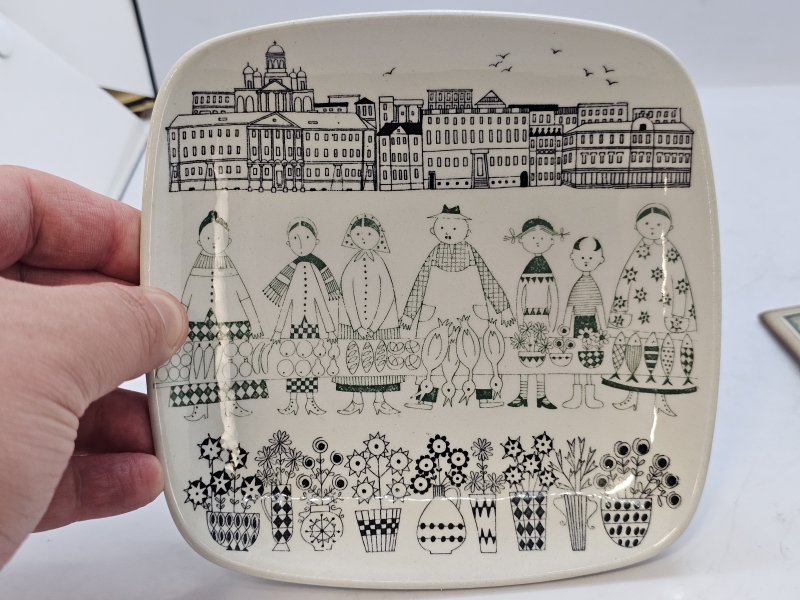 #643 2kpl Arabia esineitä: Raija Uosikkinen Kauppatori / Heljä seinälaatta