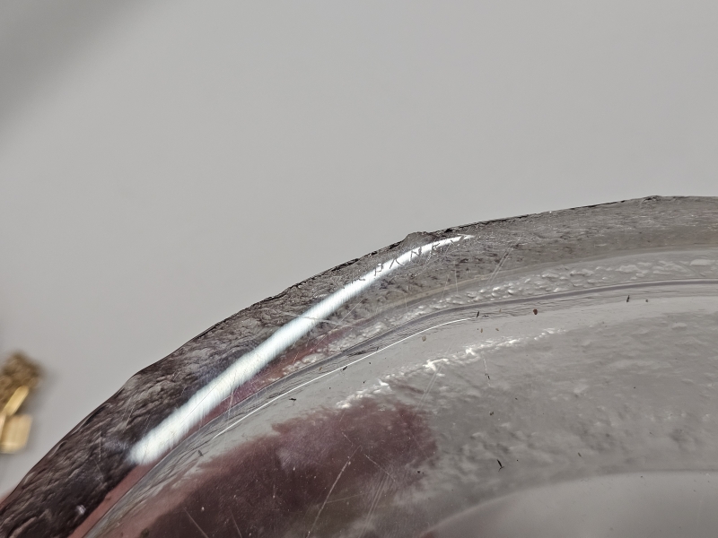 Halk: 31cm, k: 10cm. Mitättömän pieni n. 1mm kolhu, muuten hyväkuntoinen. Signeerattu