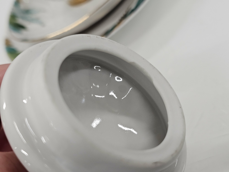 Yhden kannen alareunassa kolhu. Kupin h: 7,5cm