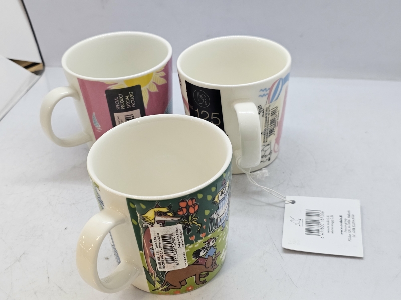 #705 3kpl Muumimukeja: Stockmann 150v / Keep Waters Clean / Toven Juhla