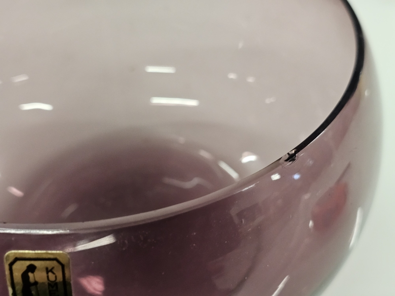 Kannussa samentumaa. Isossa kulhossa reunavika. Nimipäivä sign. Maljan h: 21cm