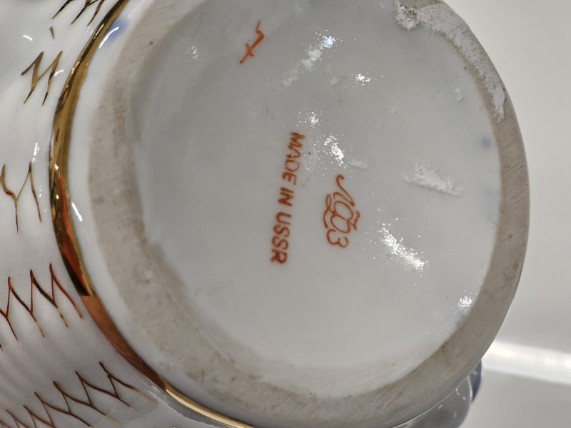 #736 - Lomonosov kannu & Arabia lysteriposliinimaljakko ja Harlekin kahvikannu