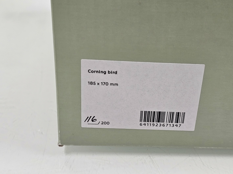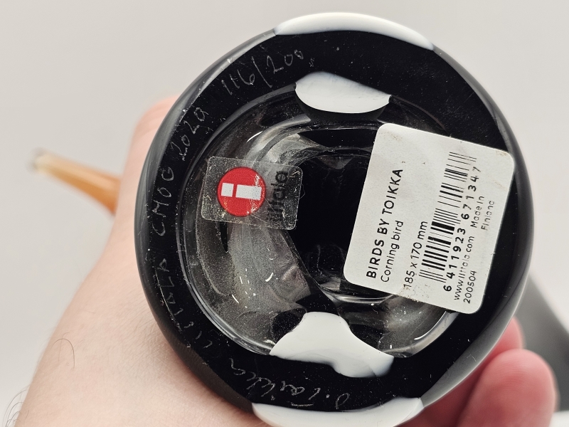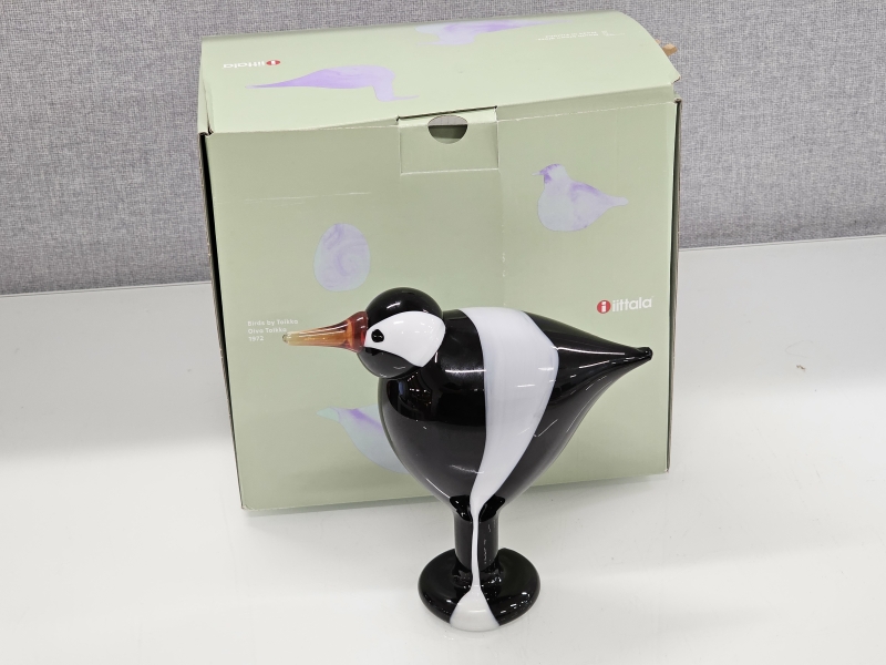#75 Oiva Toikka, taidelasilintu Mustavyöpääsky - Black Collared Swallow, erikoislintu Corning Museum of glass + laatikko