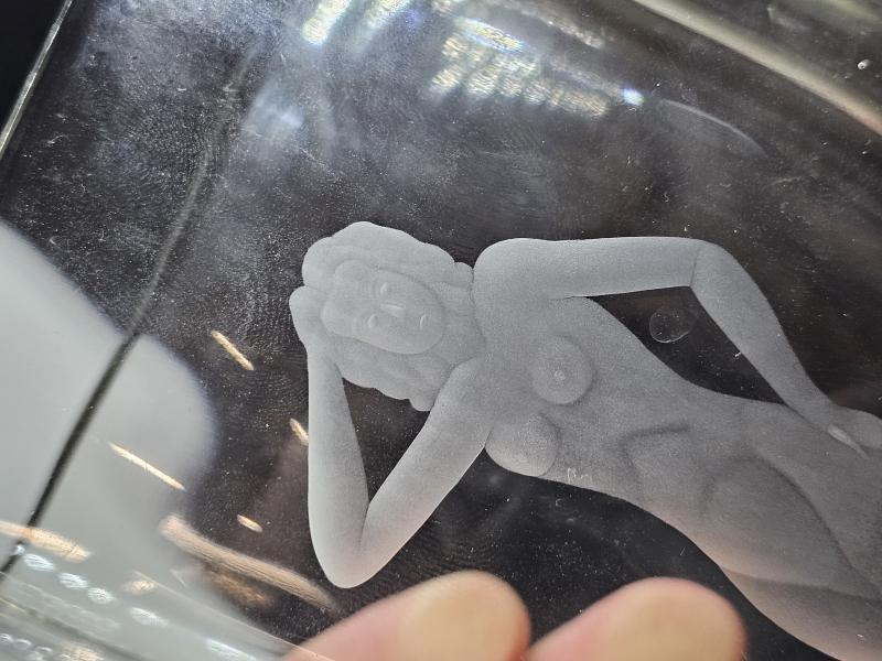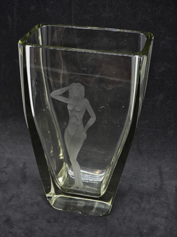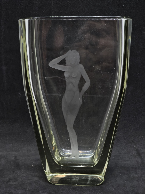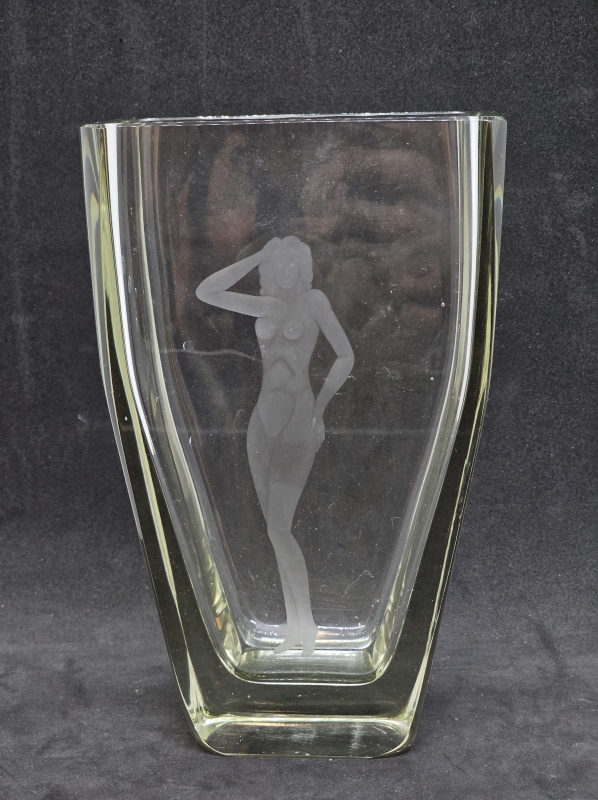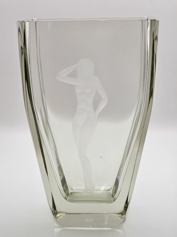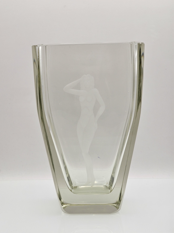#113 - Nuutajärven lasin kaiverrettu naismaljakko, 1940-luku