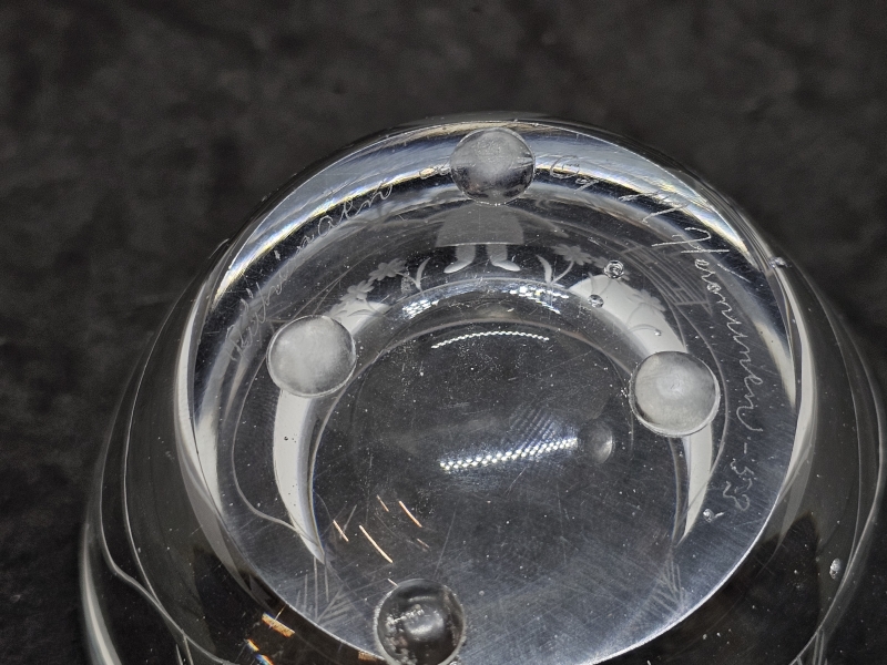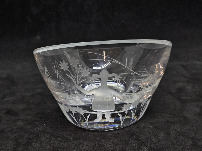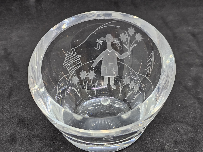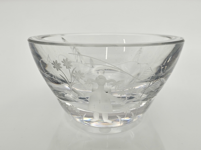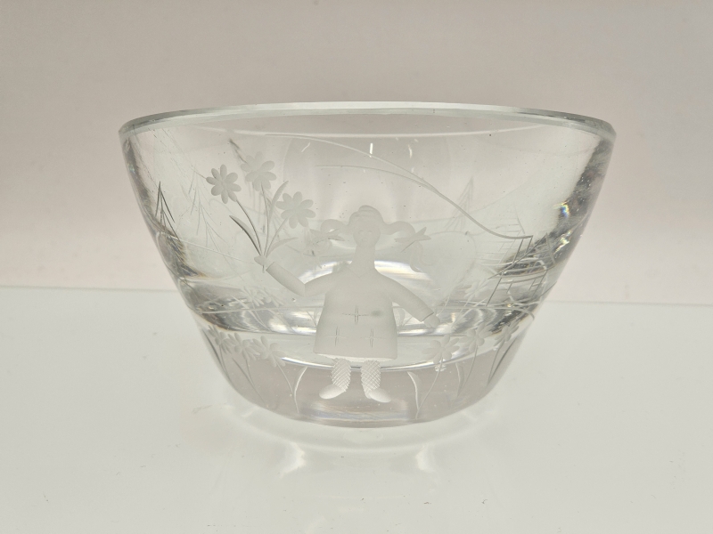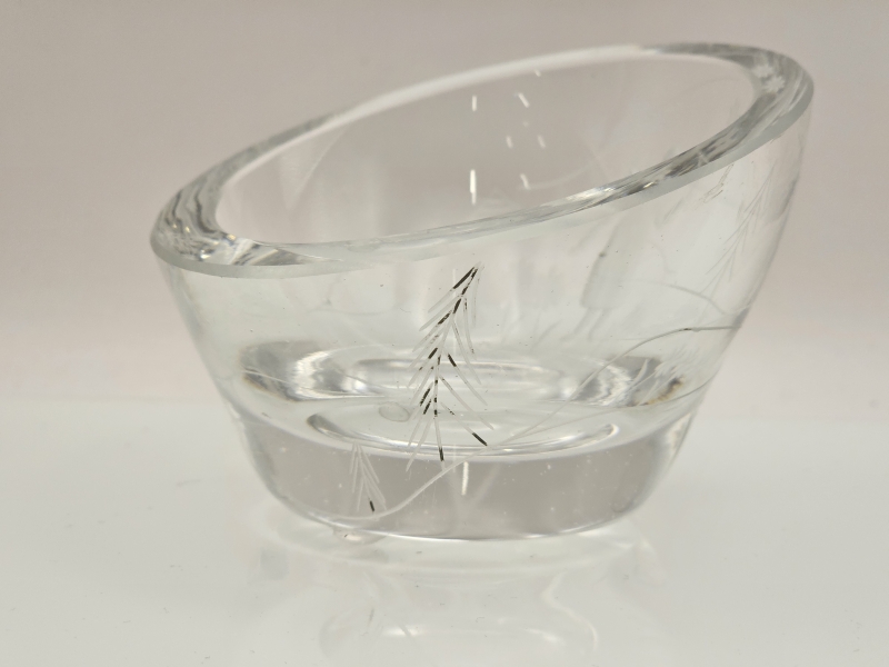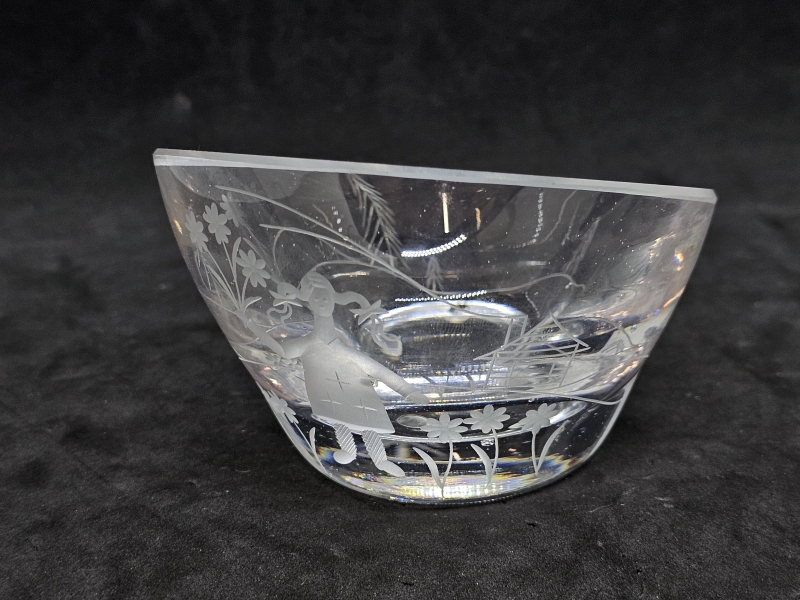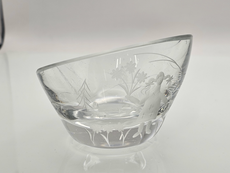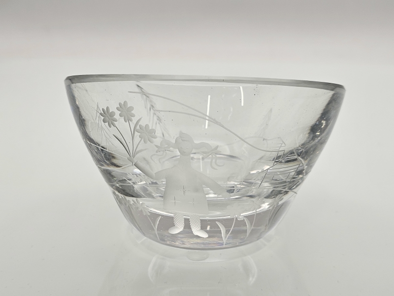 #114 - Helena Tynellin suunnittelema lasimalja Mauri Hermusen kaiverruksella, Riihimäen lasi Oy