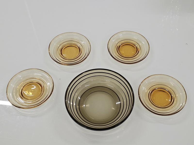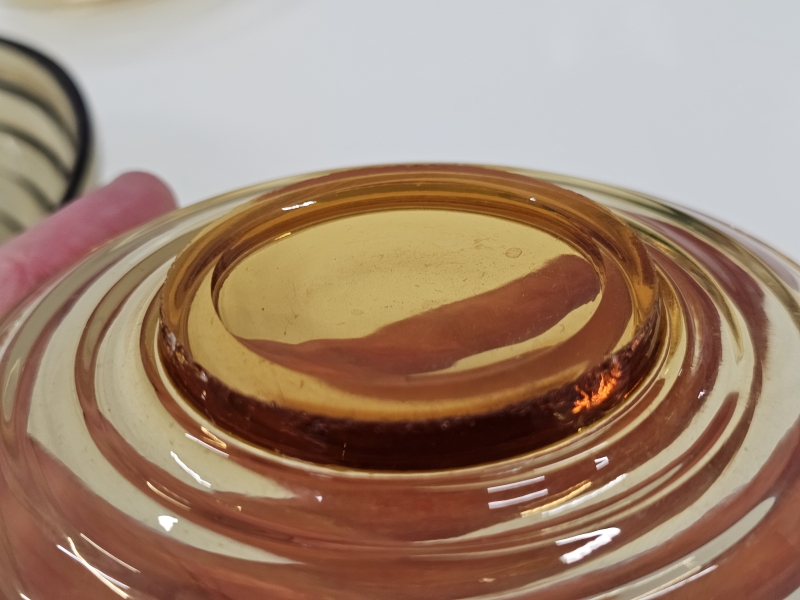 Pienempien lautasten pohjista paloja pois, isompi kulho ok. Isoin h: 18,5cm