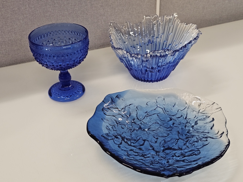 #144 3kpl sinistä lasia: Mm. Iso Revontulet -malja