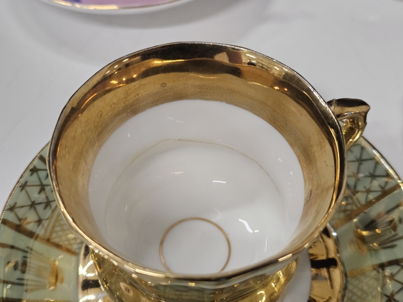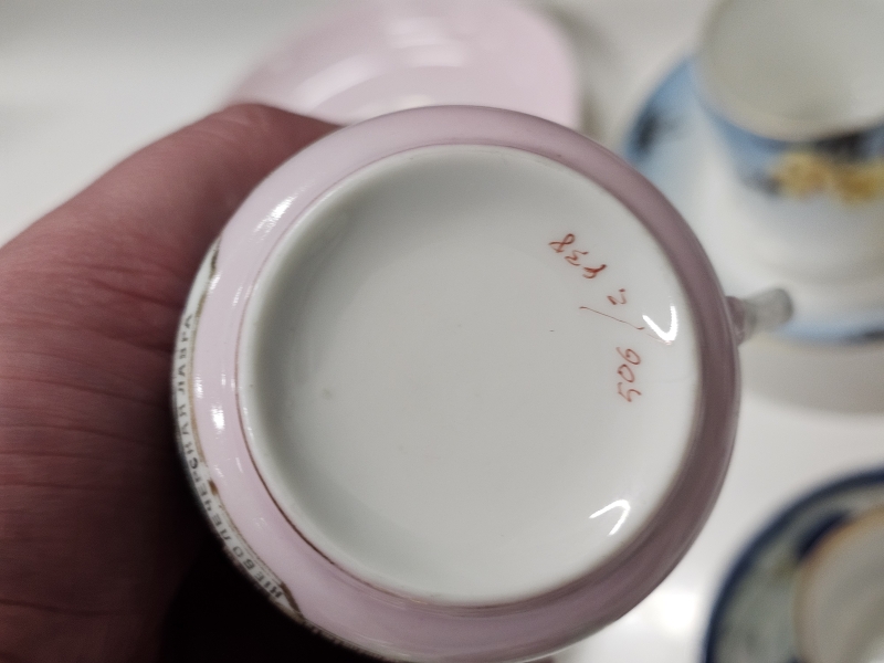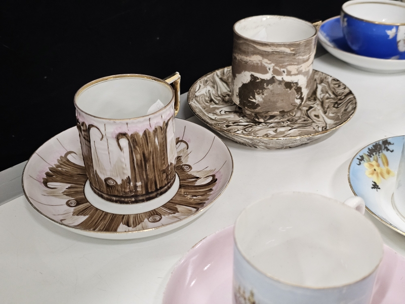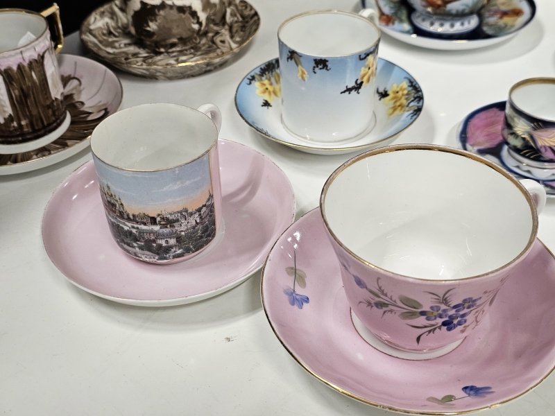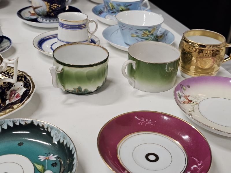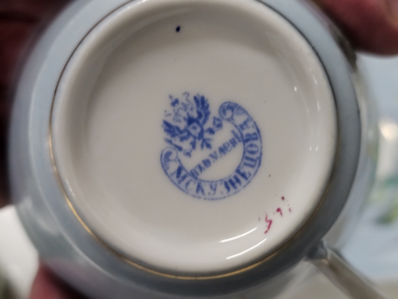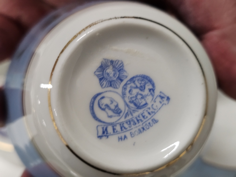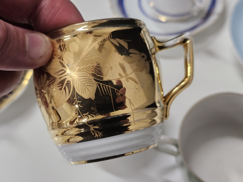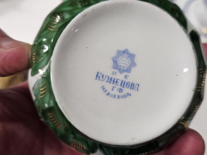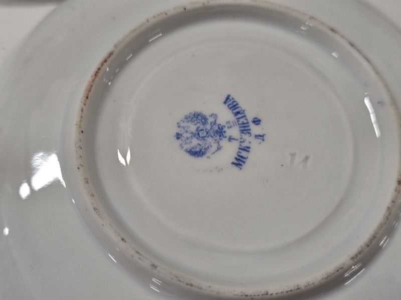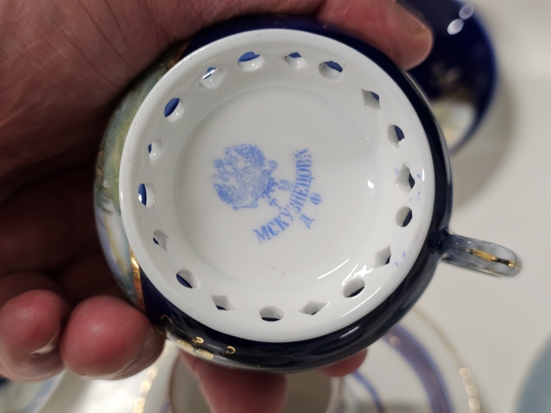 #617 14kpl vanhoja venäläisiä kuppeja ja tasseja + 3kpl kuppeja ja 4kpl tasseja