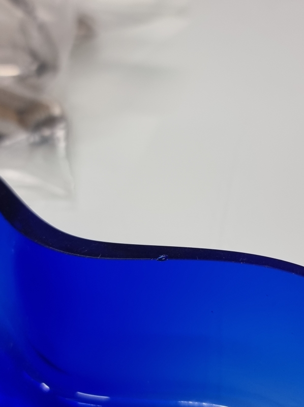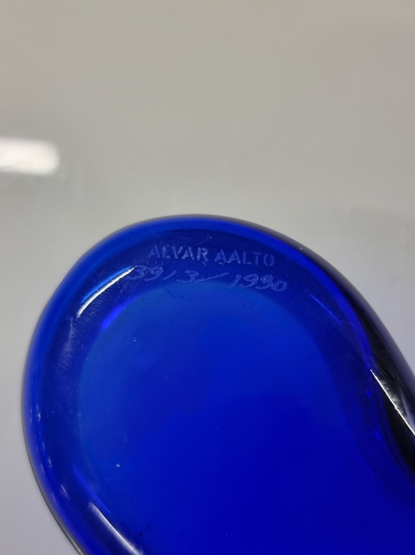 Korkein 20cm. Aaltomalja sign. ja num.: 3913/ 1990. Pohjassa kaiverrus. Aallossa kaksi reunavikaa, Muumit virheettömiä