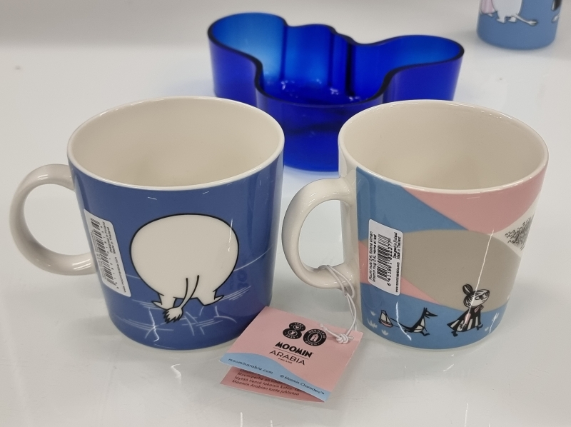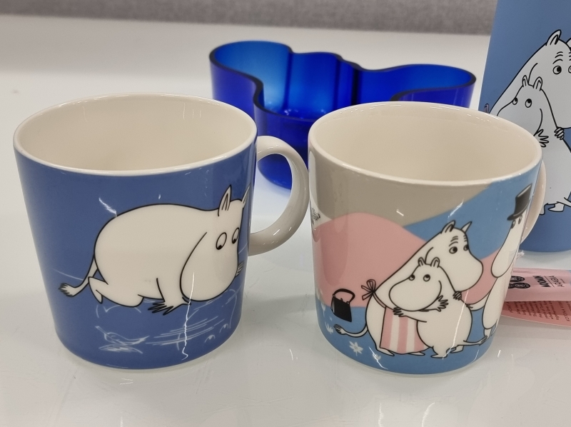 #618 2kpl Muumimukeja,termospullo ja Aalto-malja