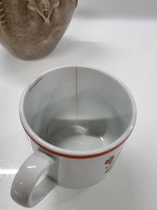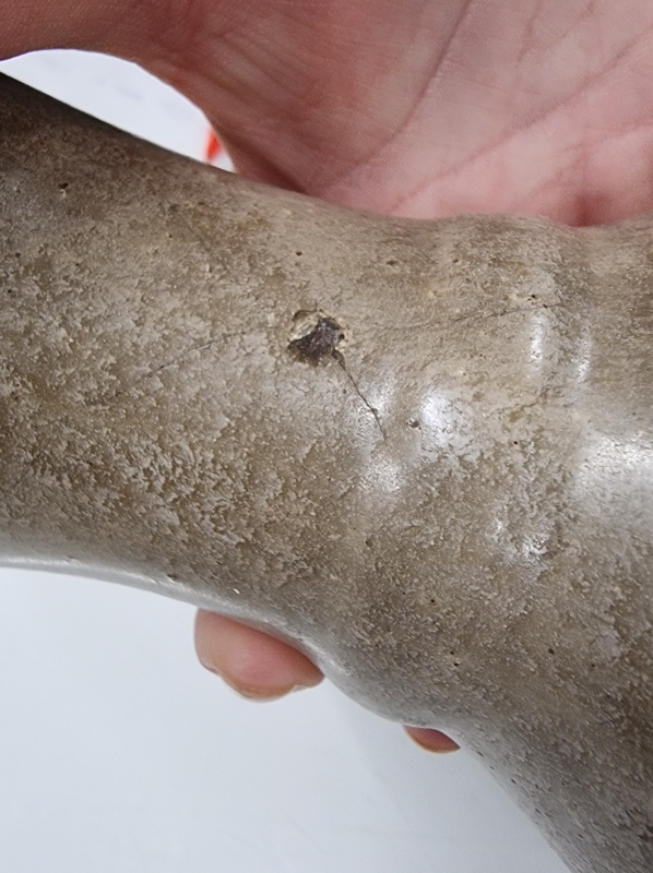 Mukissa halkeama ja kolhu, Kupittaan kannun kyljessä iskeymä. Korkein: 23cm
