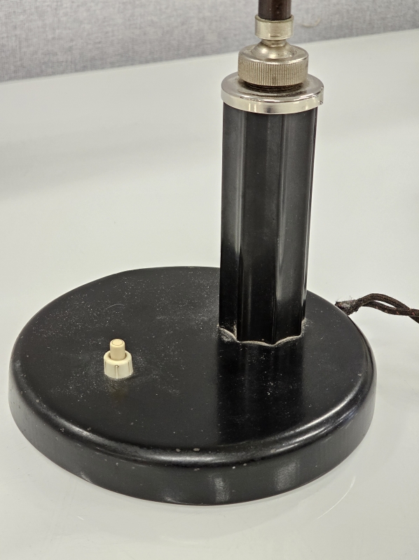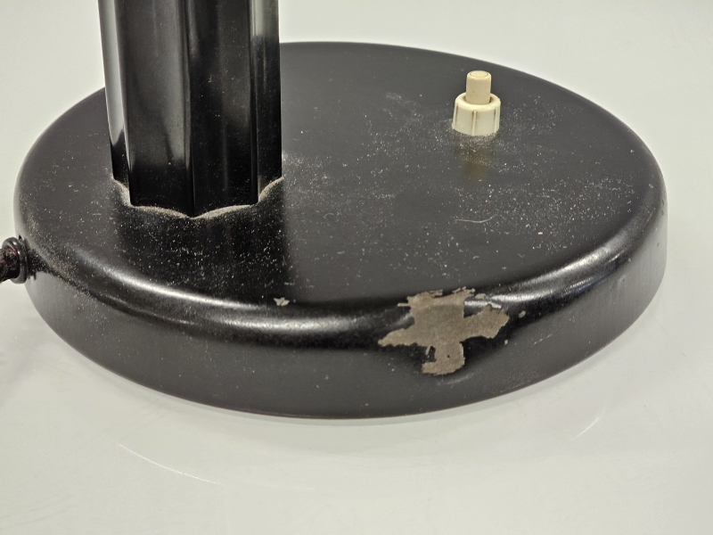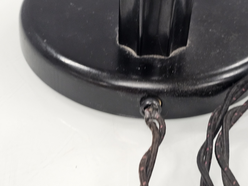 Jalassa kolhu josta maali pois. Kulumaa. K: 45cm. Sähköjohto mahdollisesti vaihdettava