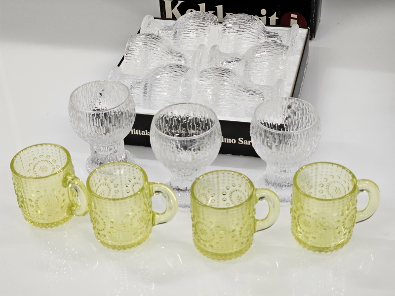 #173 - Erä lasia: 9kpl Timo Sarpaneva Kekkerit -laseja & 4kpl Nanny Still Grapponia