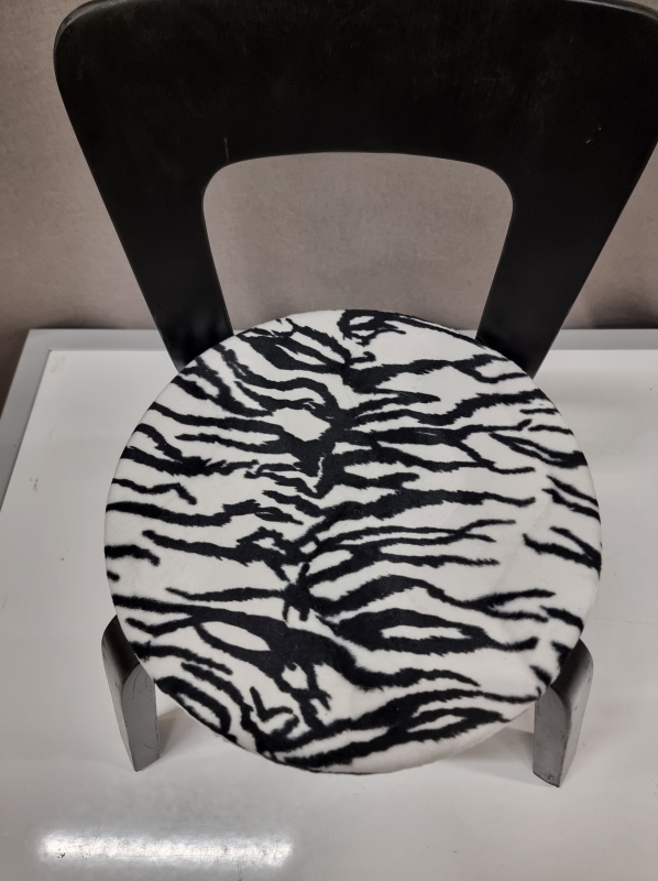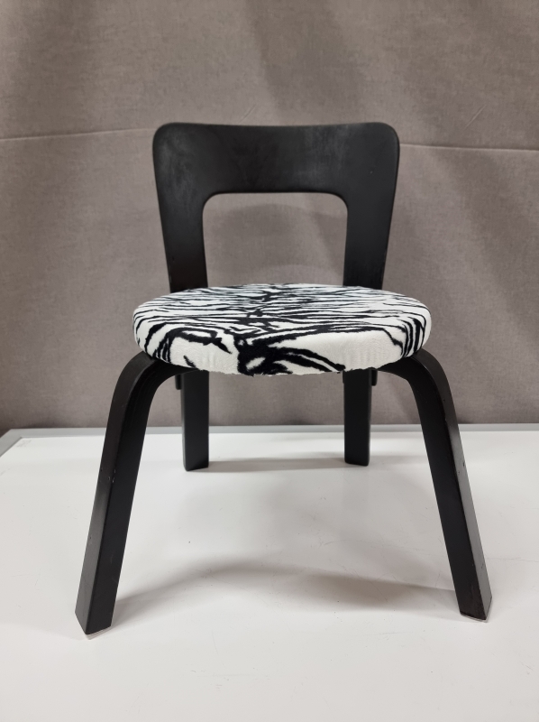 Korkeus 57 cm, halkaisija 36 cm. Uudempi verhoilu ja maalaus