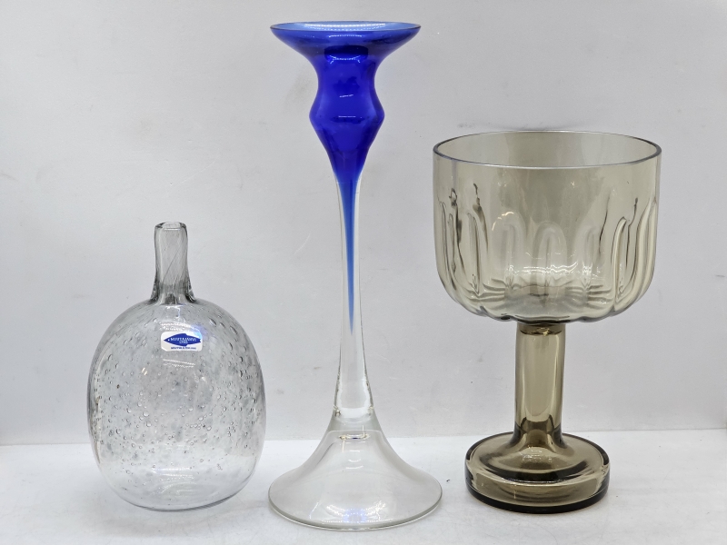 #198 - 3kpl taidelasilasia: Oiva Toikka pullo + Helena Tynell Aurora + Kumela