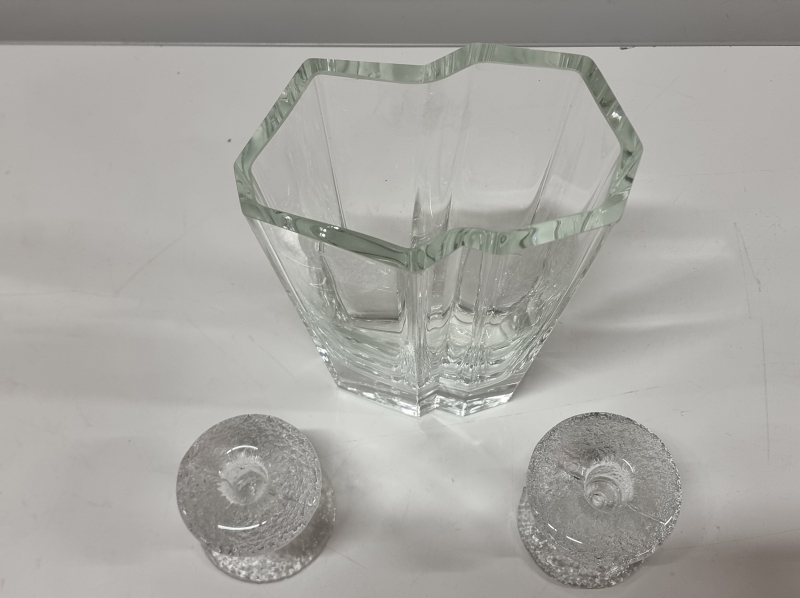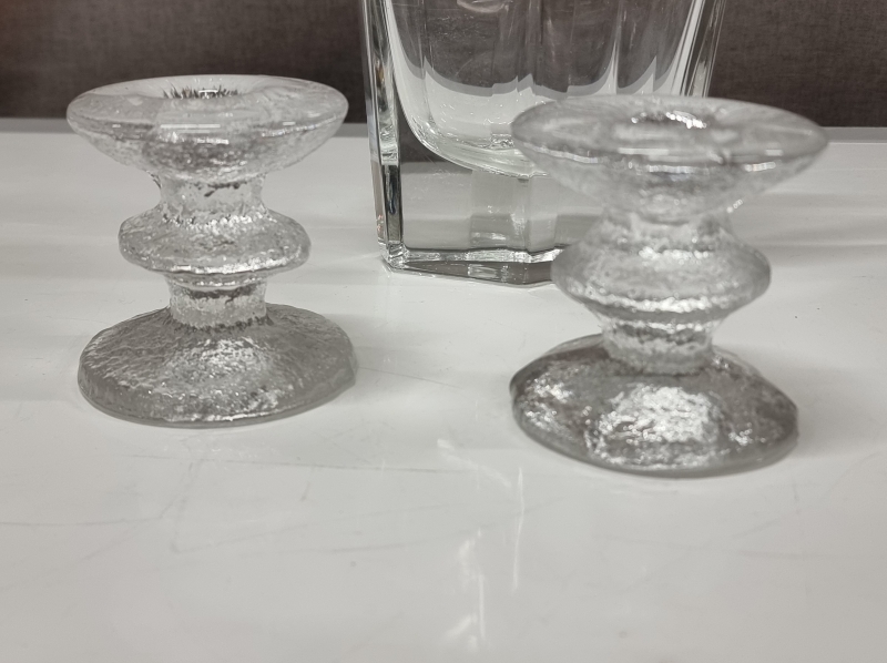 #202 - Tapio Wirkkala maljakko + 2kpl Timo Sarpaneva Festivo-kynttilänjalkaa