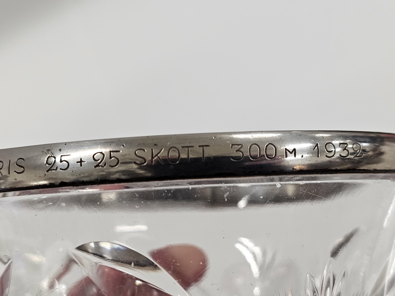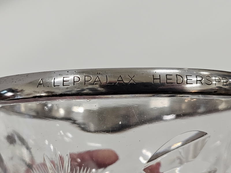#299 3kpl lasiesineitä: Aimo Okkolin hopeapannalla, Wirkkala & art deco malja ym.