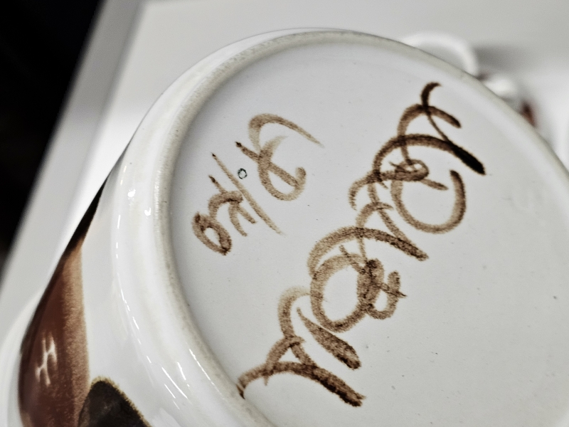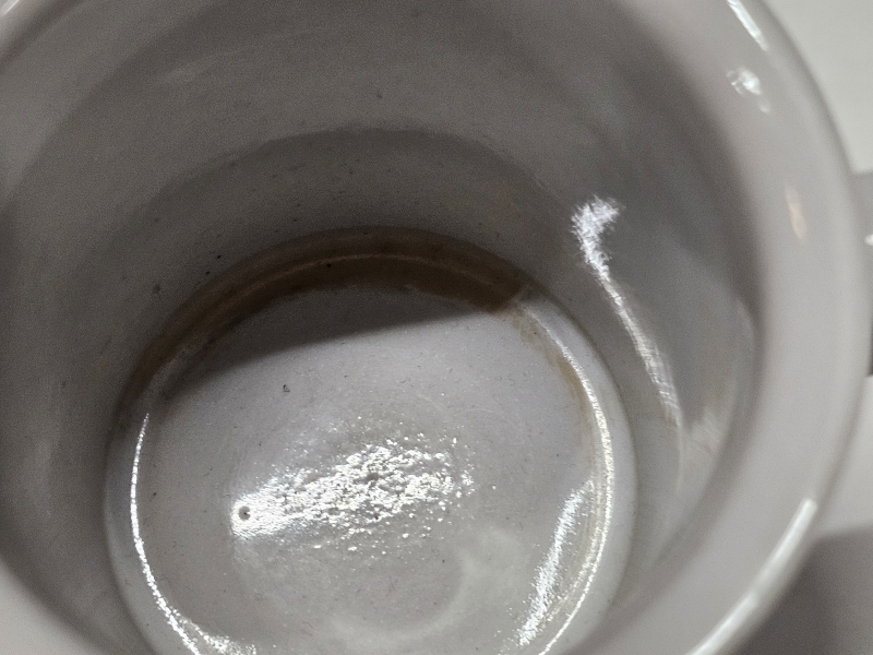 Kannun sisäpinnassa värjäytymää, muuten hyväkuntoiset. Kupin h: 7cm