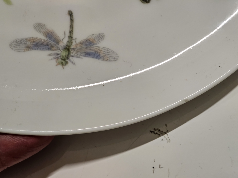 Isossa vadissa ja yhdessä lautasessa pienet kolhut, muut hyväkuntoiset. Lautasten h: 24,5cm