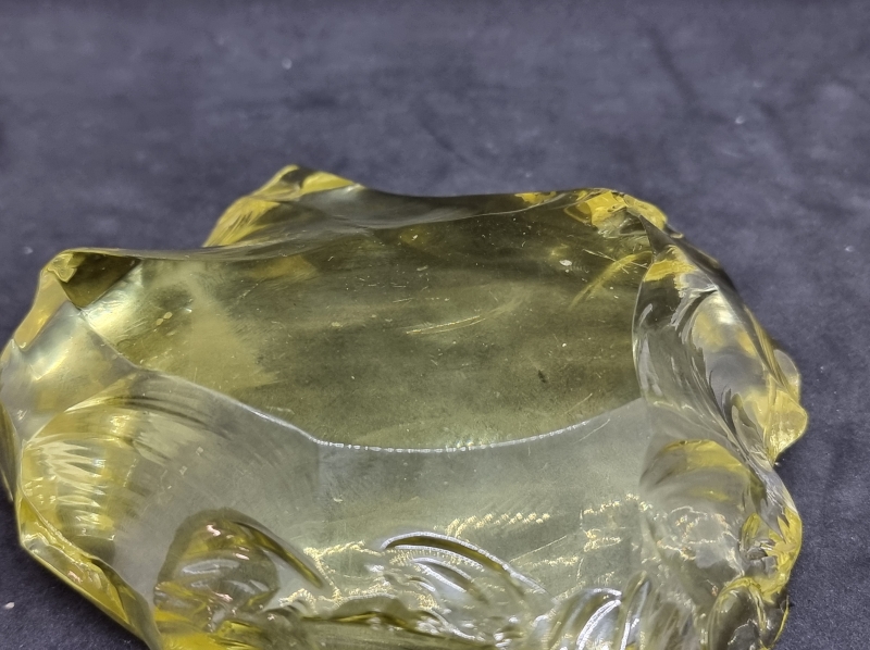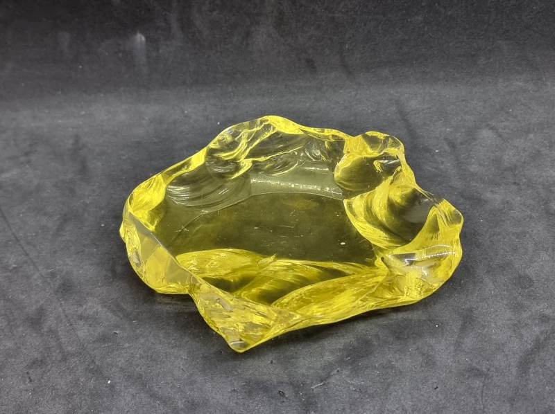 Hiottua, vasaroitua kristallia. Ei signeerausta. Leveys 13cm.