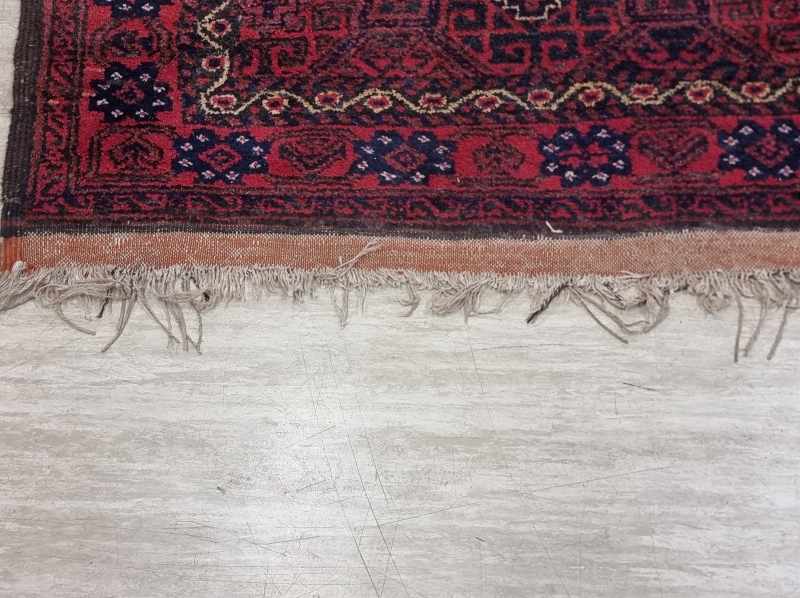 Likaa, kulumaa, kieroja ja hapsuissa vikaa. 84cm x 163cm ja 96cm x 172cm.
