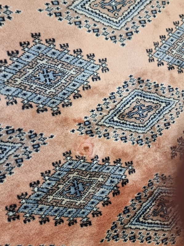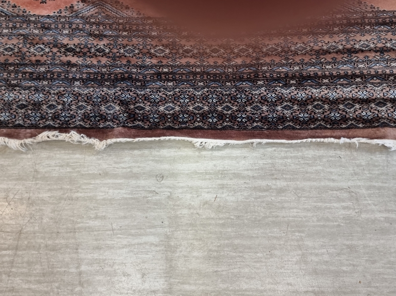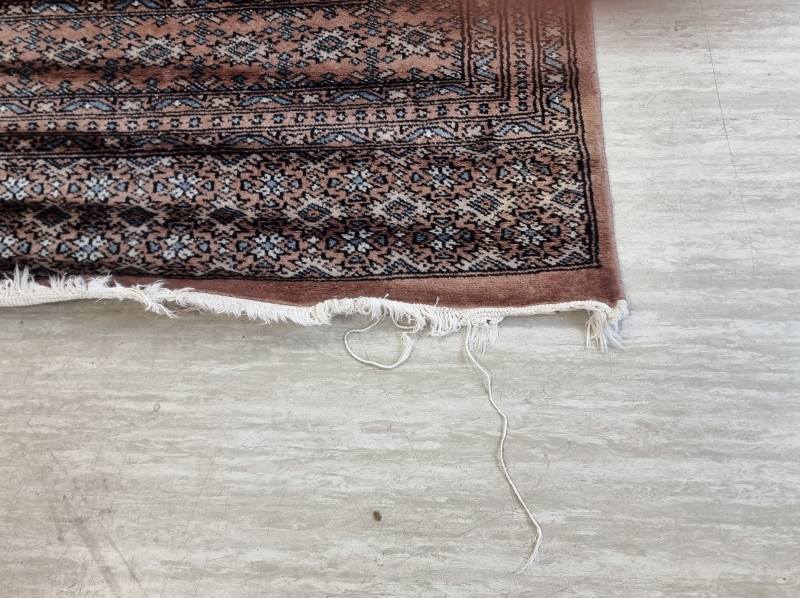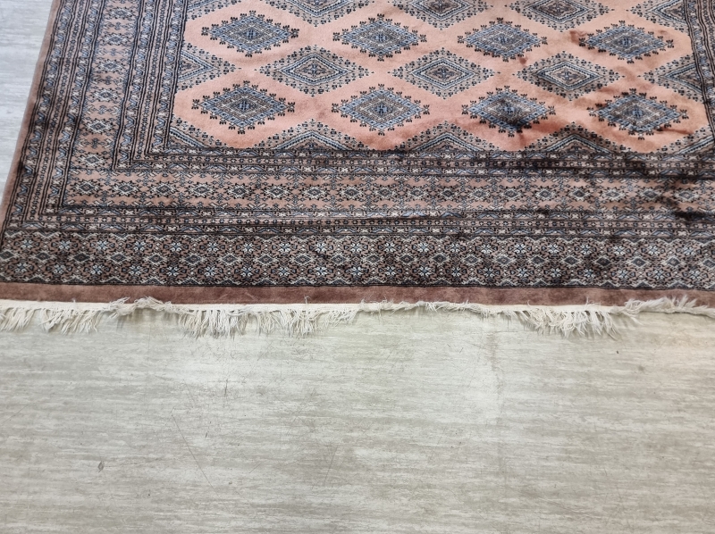 Hapsuissa vikoja ja yhdessä kohdassa kulumaa. 185cm x 277cm.