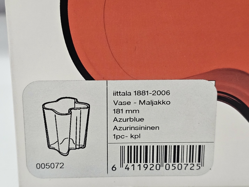 #374 - Alvar Aalto, azurinsininen maljakko 181mm + laatikko