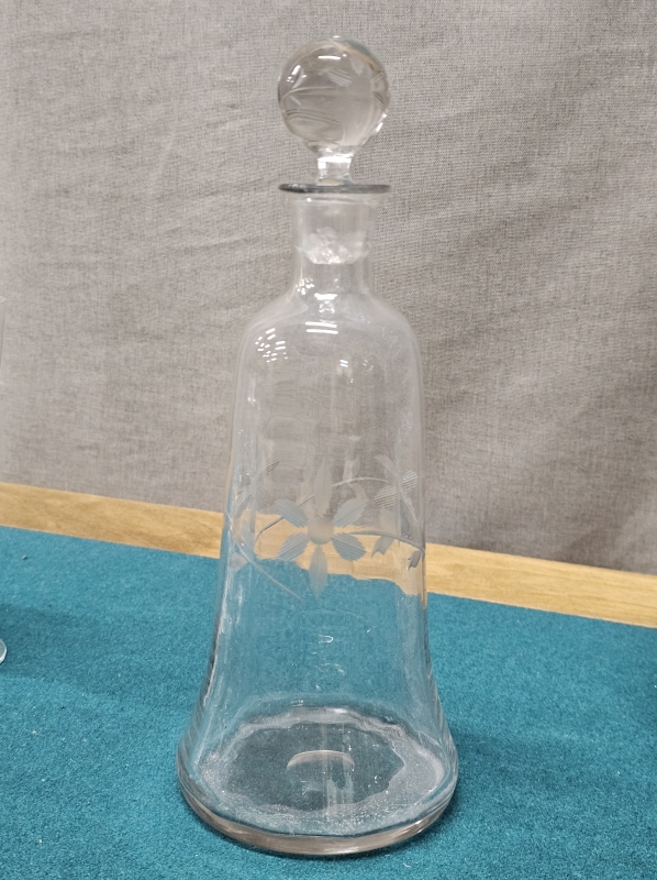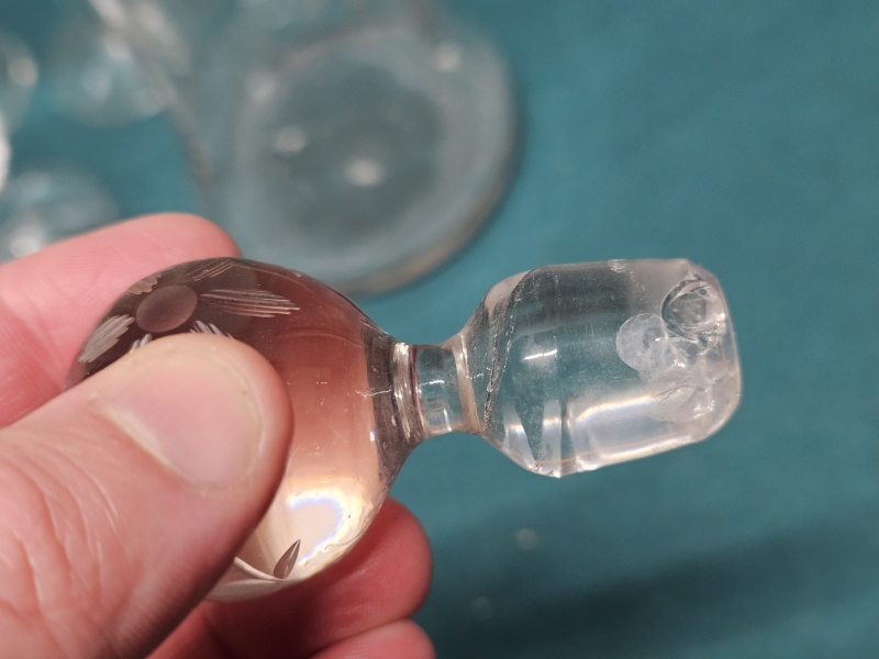 Karahvin korkista paloja pois ja karahvissa saostumaa