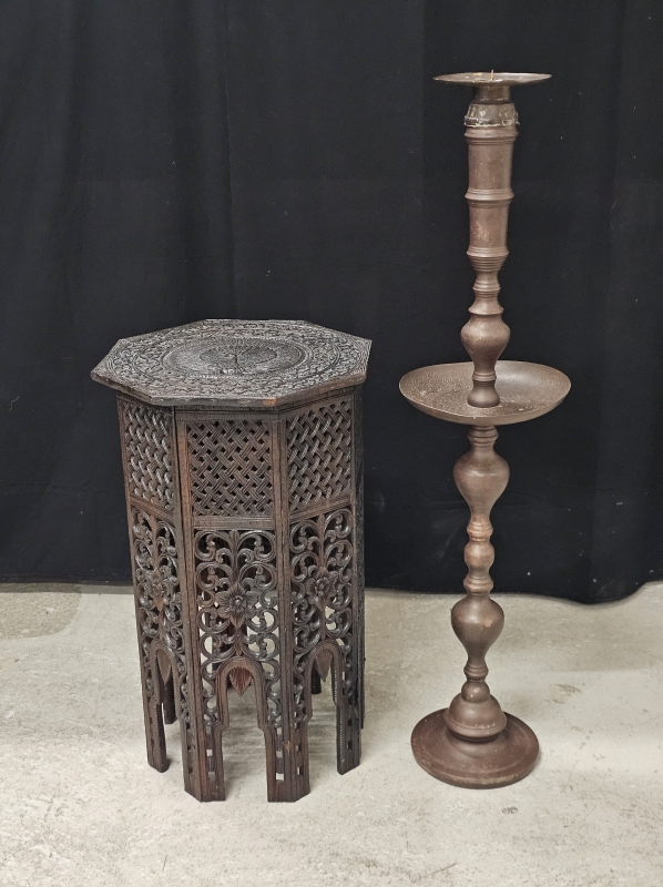 #2200 - Itämainen pöytä + metallinen kynttilänjalka