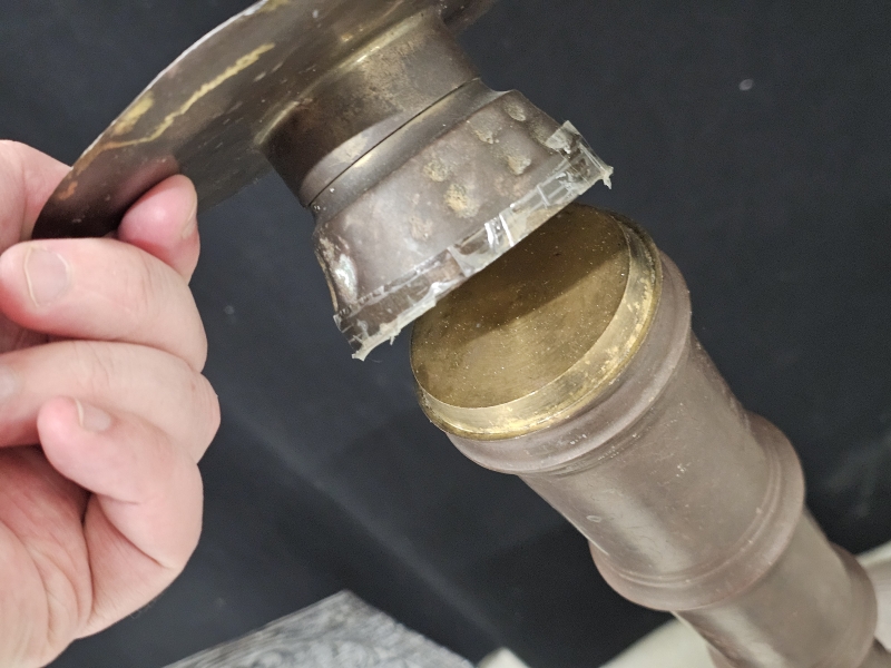 Pöydässä halkeama. Kynttilänjalan yläosa irti. Korkeus 110cm