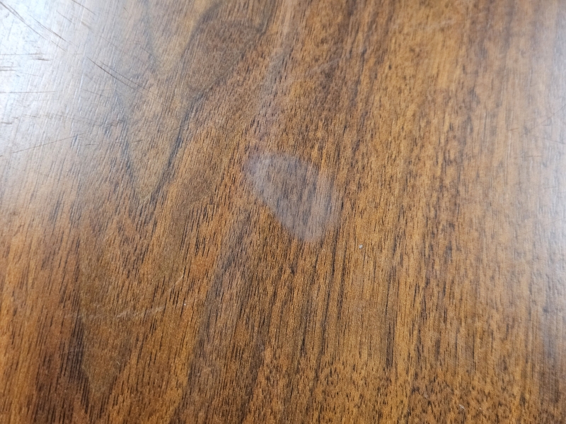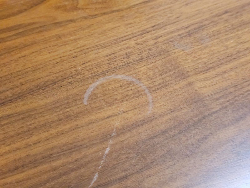 Kulumaa pinnassa. Pöytä 110cm x jatkopalan kanssa 158cm
