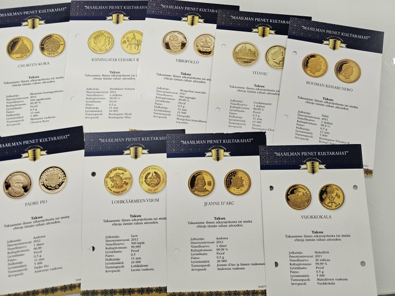 #1081 16kpl Maailman pienet kultarahat -sarjan kultakolikkoja, 8g