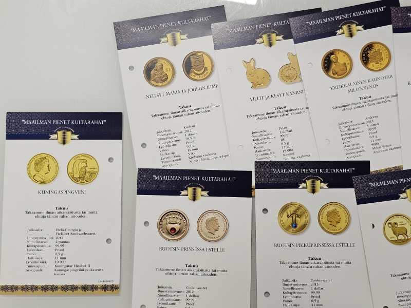 #1083 16kpl Maailman pienet kultarahat -sarjan kultakolikkoja, 8g