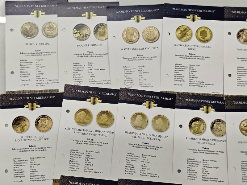 #1086 16kpl Maailman pienet kultarahat -sarjan kultakolikkoja, 8g