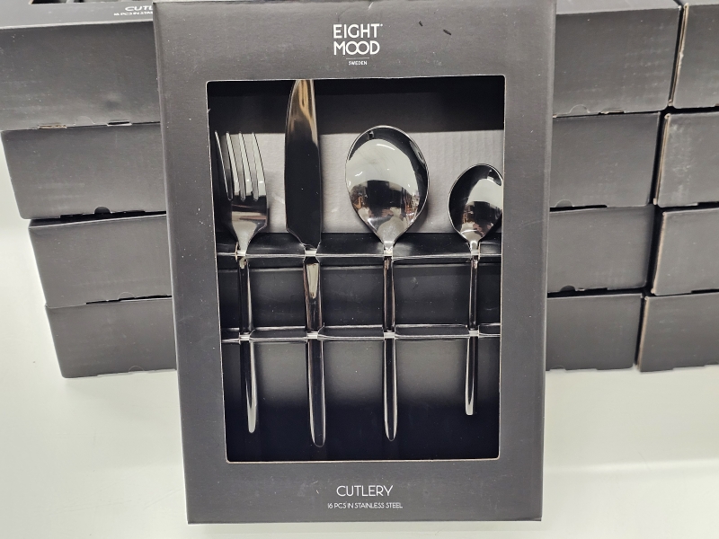 #2502 17 pakettia käyttämättömiä Eight Mood metallisia ruokailuvälineitä