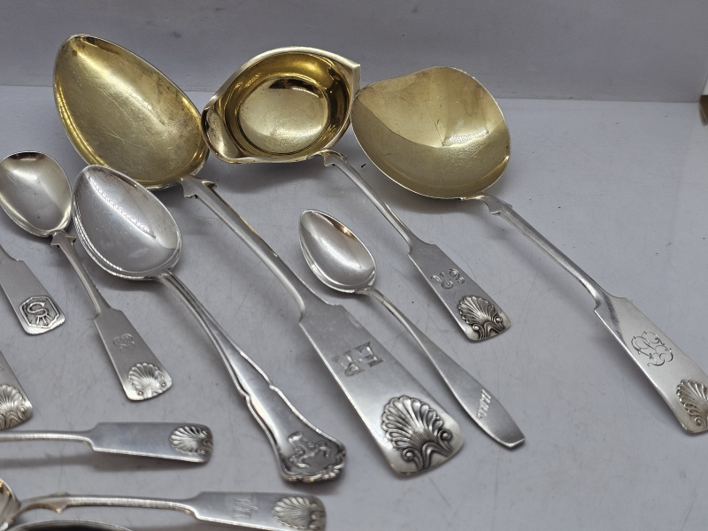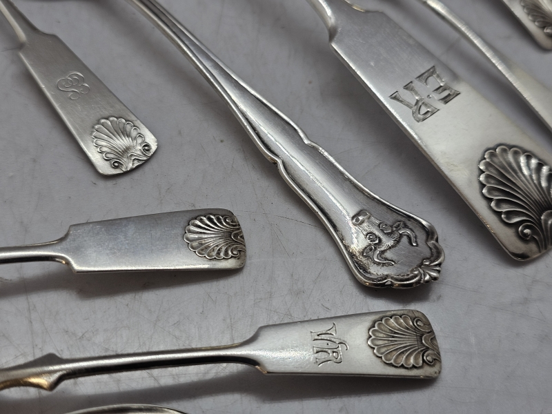 #1130 Erä hopeisia Musla -ottimia, joista yksi suojeluskuntalusikka