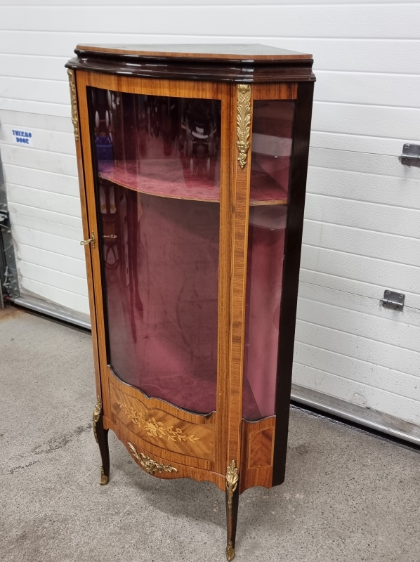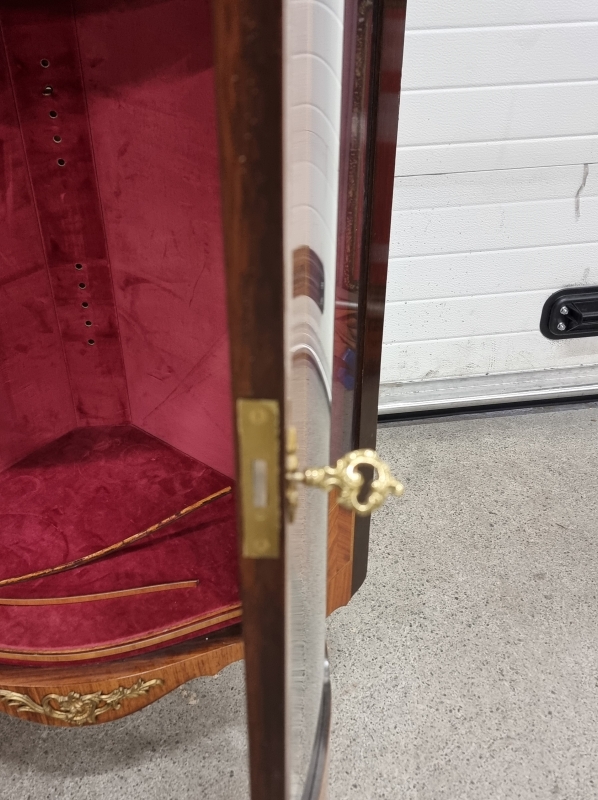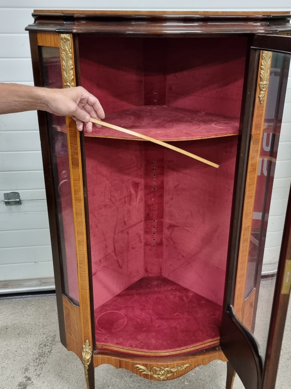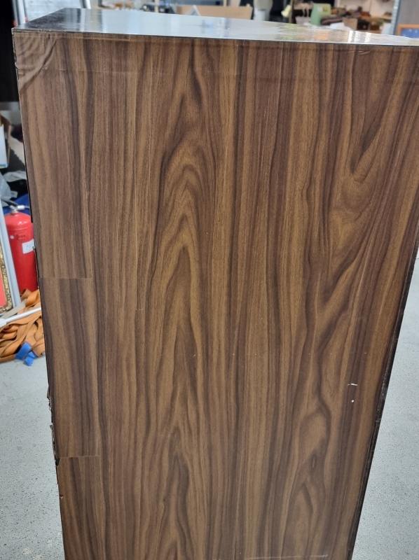 Hyllyjen koristeet irti, yksi hyllynkannake puuttuu. Sivun syvyys 54cm, kork. 140cm