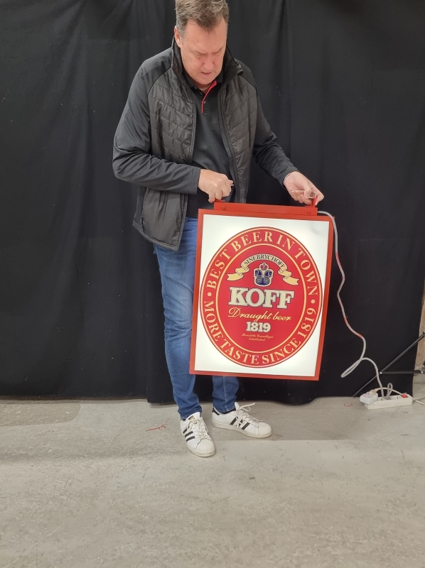 Testattu, toimii. Kaksipuoleinen. Lev. 52cm ja kork. 75cm.